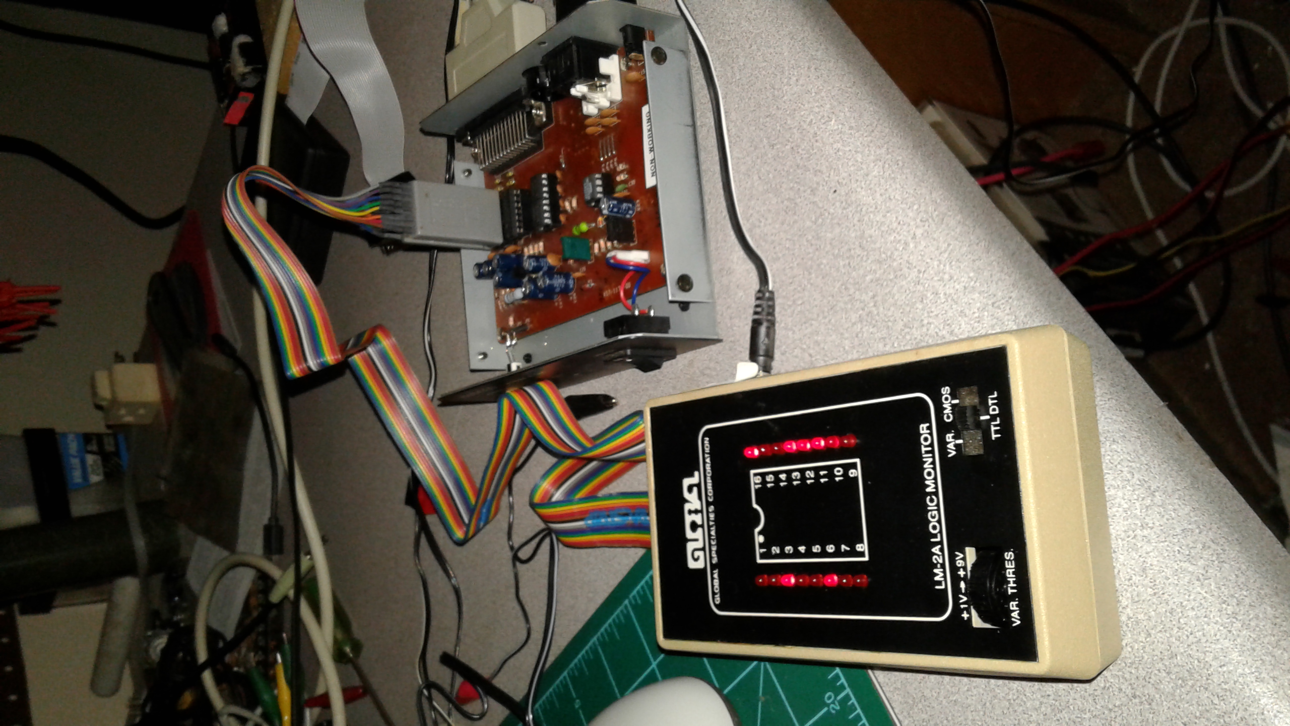 While I had the IF-232C opened up, I took the occasion to make sure the Global Specialties LM-2A Logic Analyzer was working as it should. The LM-2A simply uses a clip-on DIP style probe and LED’s to indicate the status of each pin. All those flashing lights can be darn near hypnotic 😉