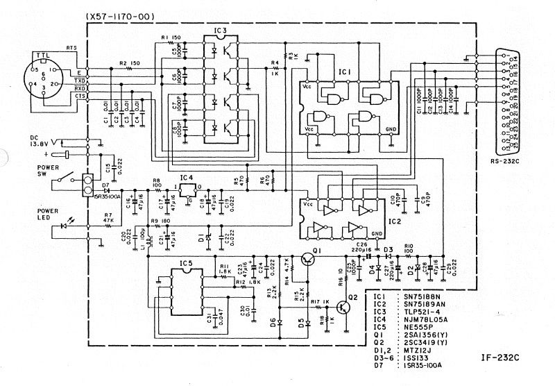 computer, the computer could not communicate with the radio or control it. He had another IF-232C and it would work properly using all the same cables, radio, and computer. So he thought perhaps one of the logic IC’s was bad.